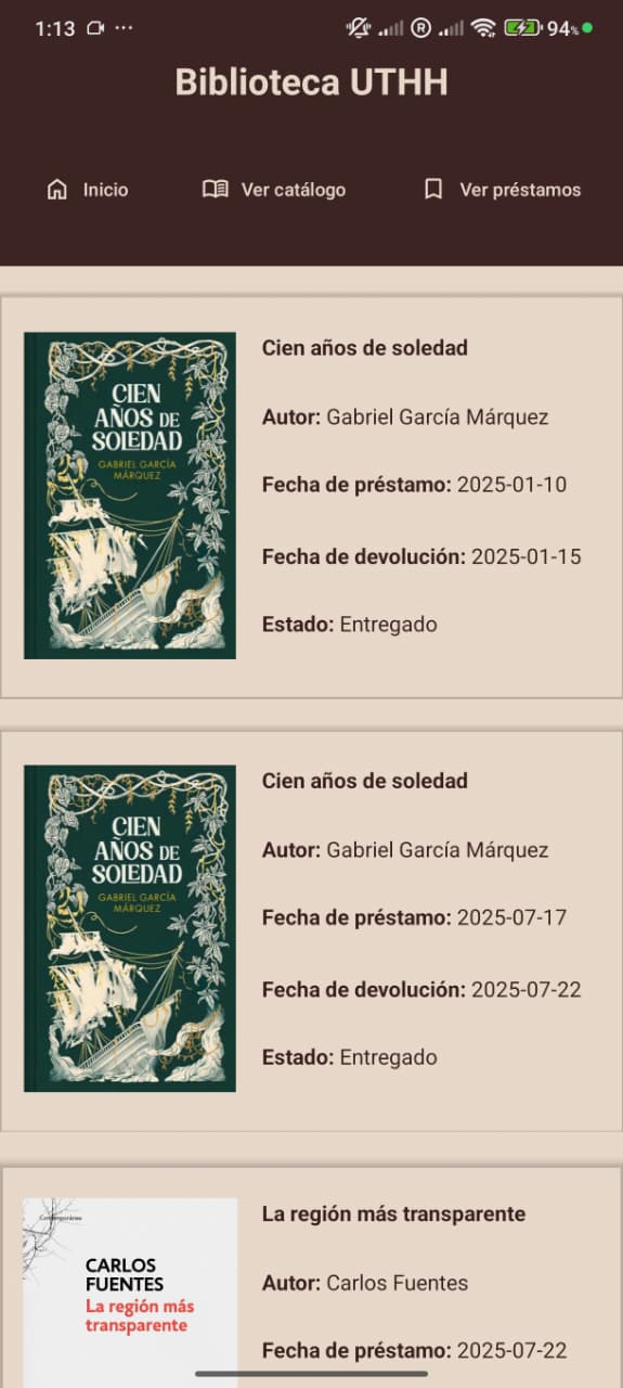 Además, la plataforma muestra de forma organizada qué libros se encuentran prestados y cuáles están listos para solicitar, ayudando a mantener un mejor control de los préstamos. Gracias a su interfaz accesible, la comunidad escolar puede gestionar sus recursos de lectura con mayor comodidad y promover el uso adecuado del material bibliográfico dentro del entorno educativo.